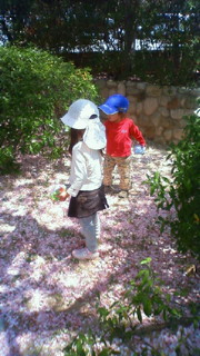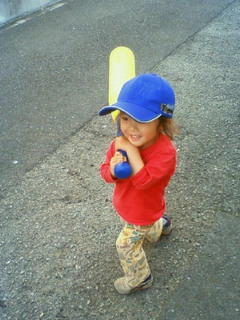 球場横の広場で遊ぶ愛息子。