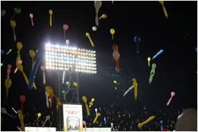 ここはワシが風船飛ばして応援せんとなっ!