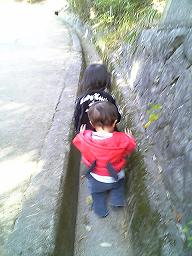 溝を歩く愛娘と愛息子。