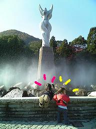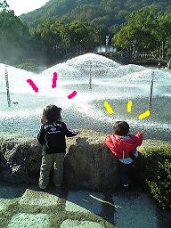 噴水前の広場で、ママの作ってくれたお弁当を食べて
