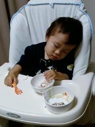 題名:「初ゴハン中にねんね」