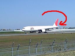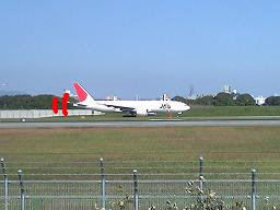 助走をつけるため、のろのろ走る飛行機。