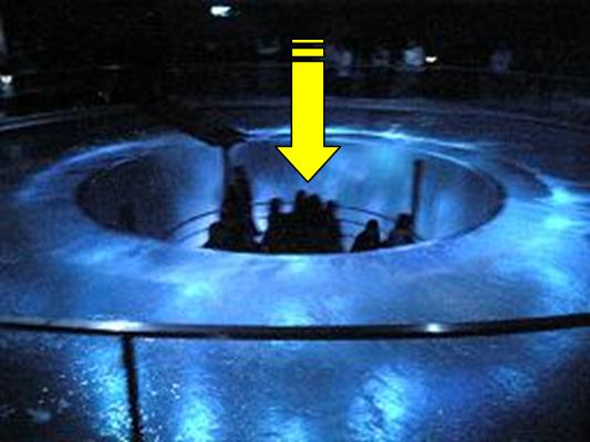 水深12Mの水槽があり、たくさんの魚が泳いでます。